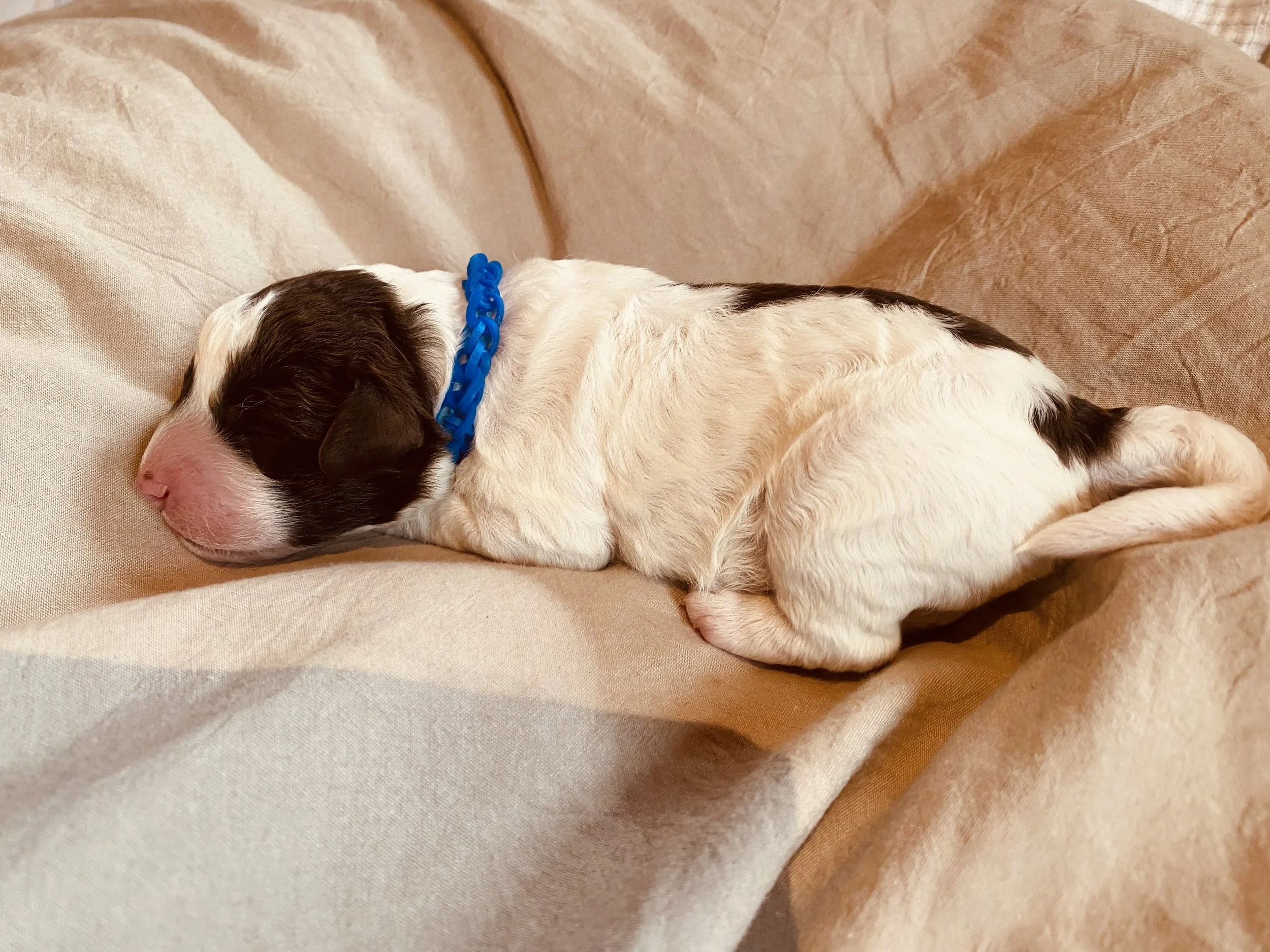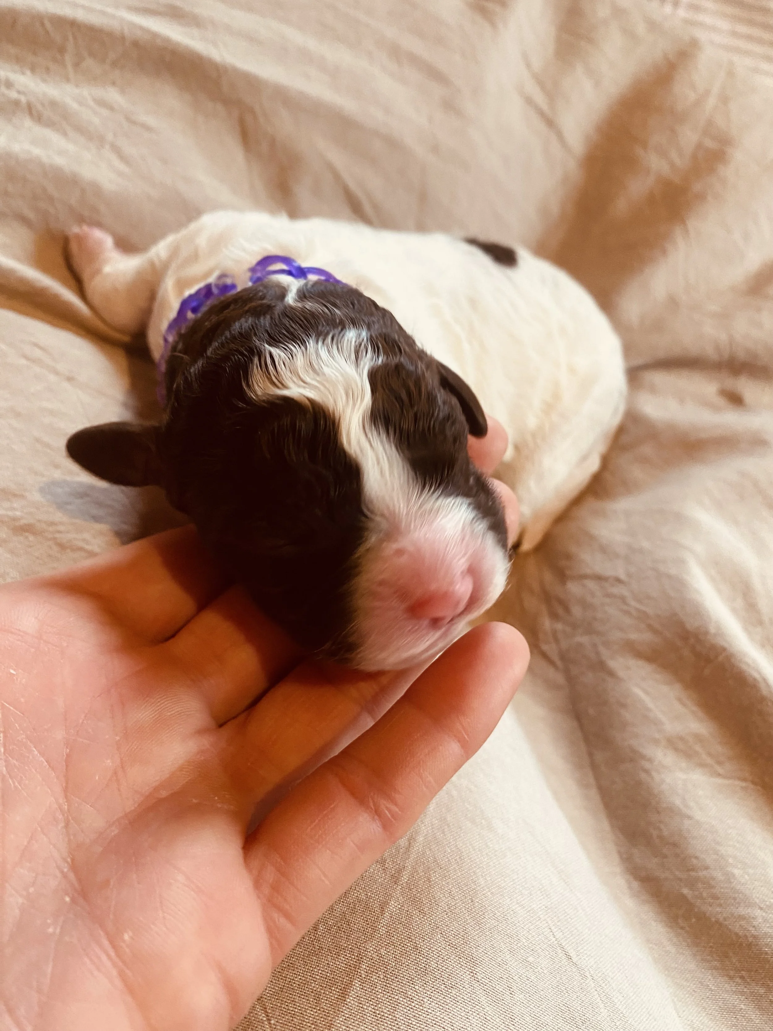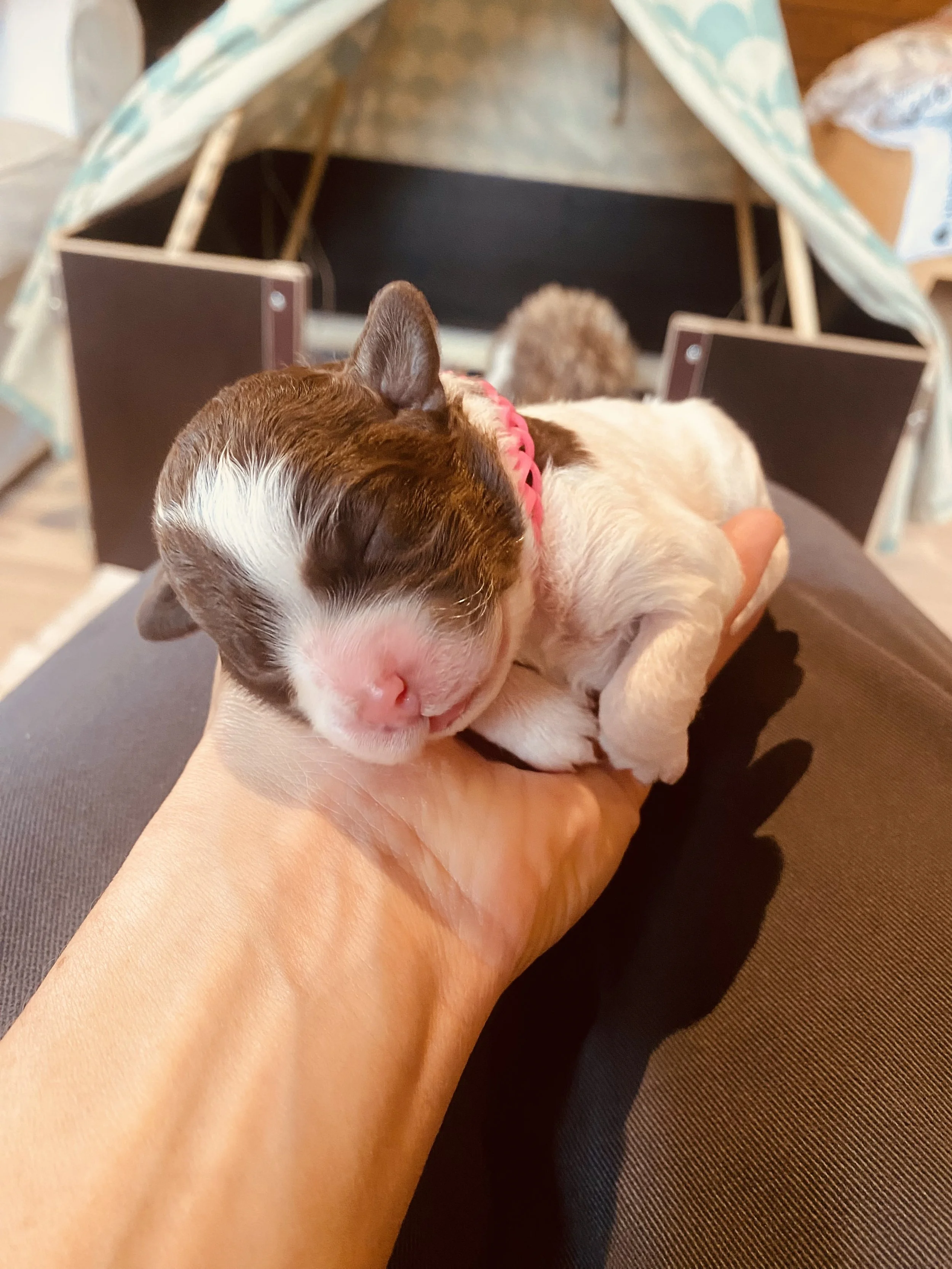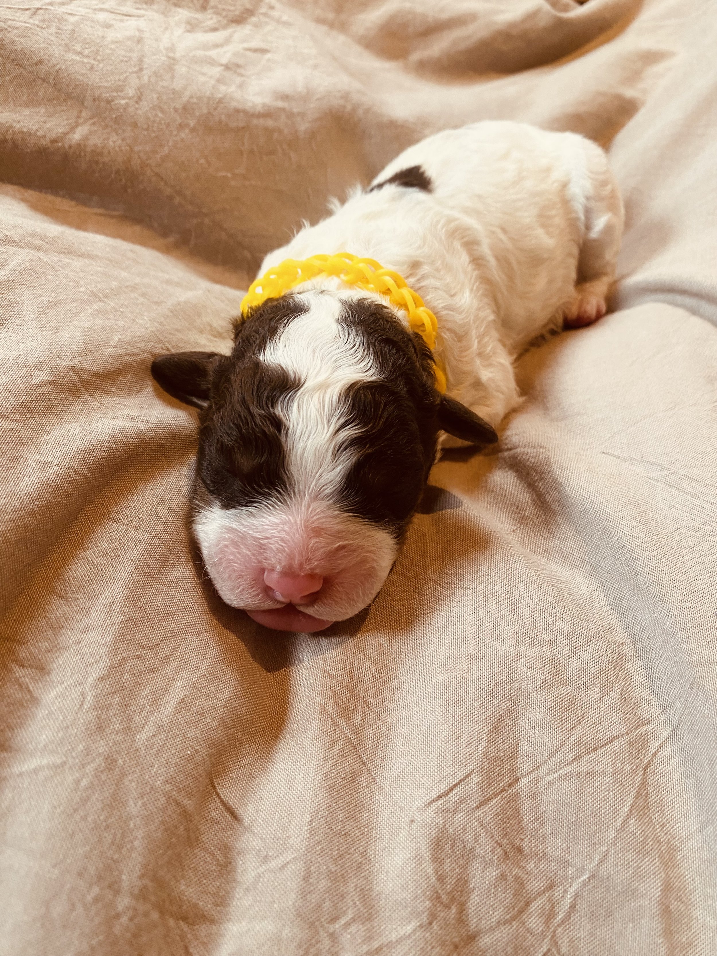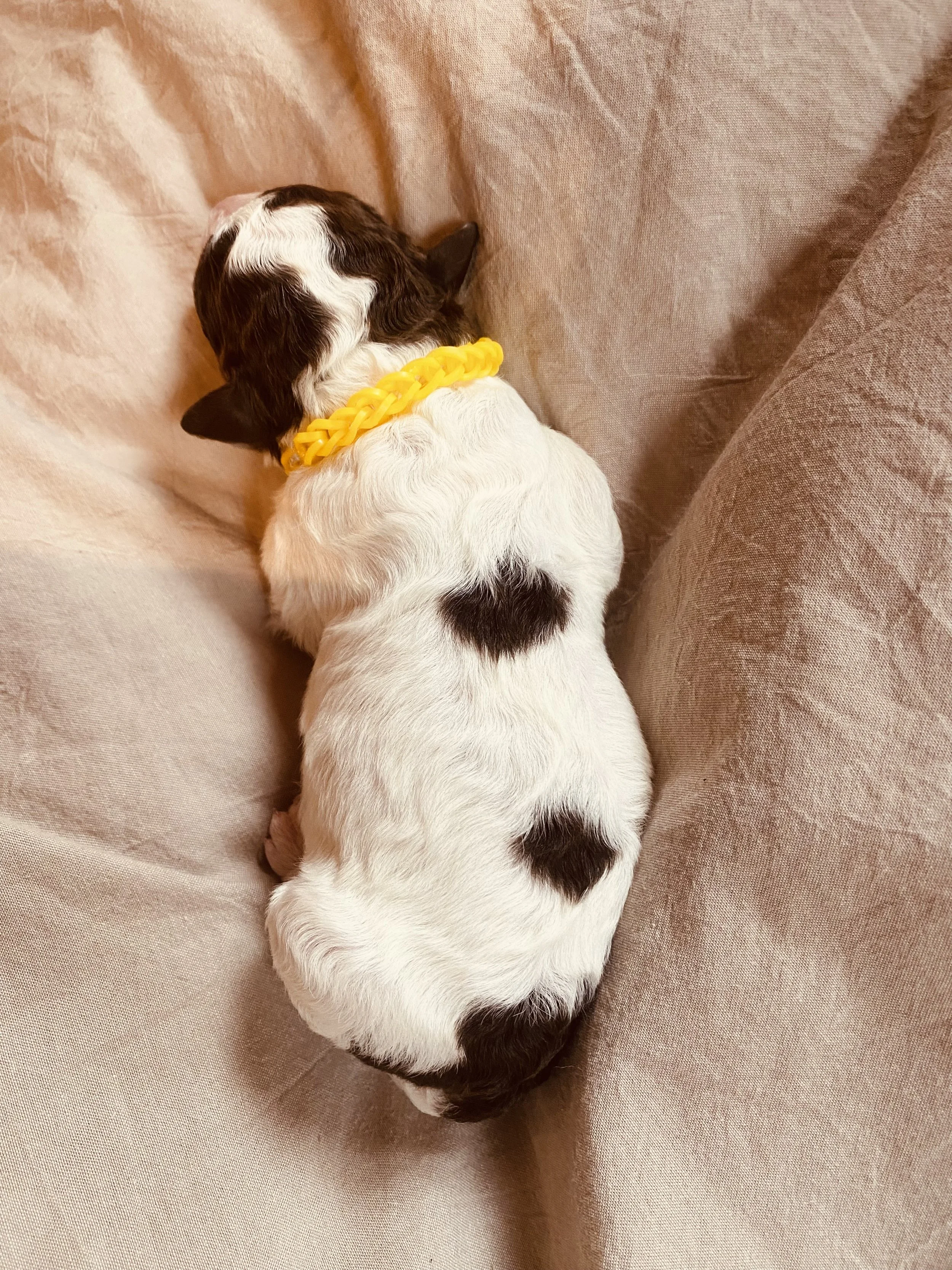 hört auf den Namen “Susi”, auf die Welt gekommen als Amira vom Brandkopf, am 11. März 2023 im Pinzgau. Susi´s Fellcode ist “Bianco Marone Focato “.